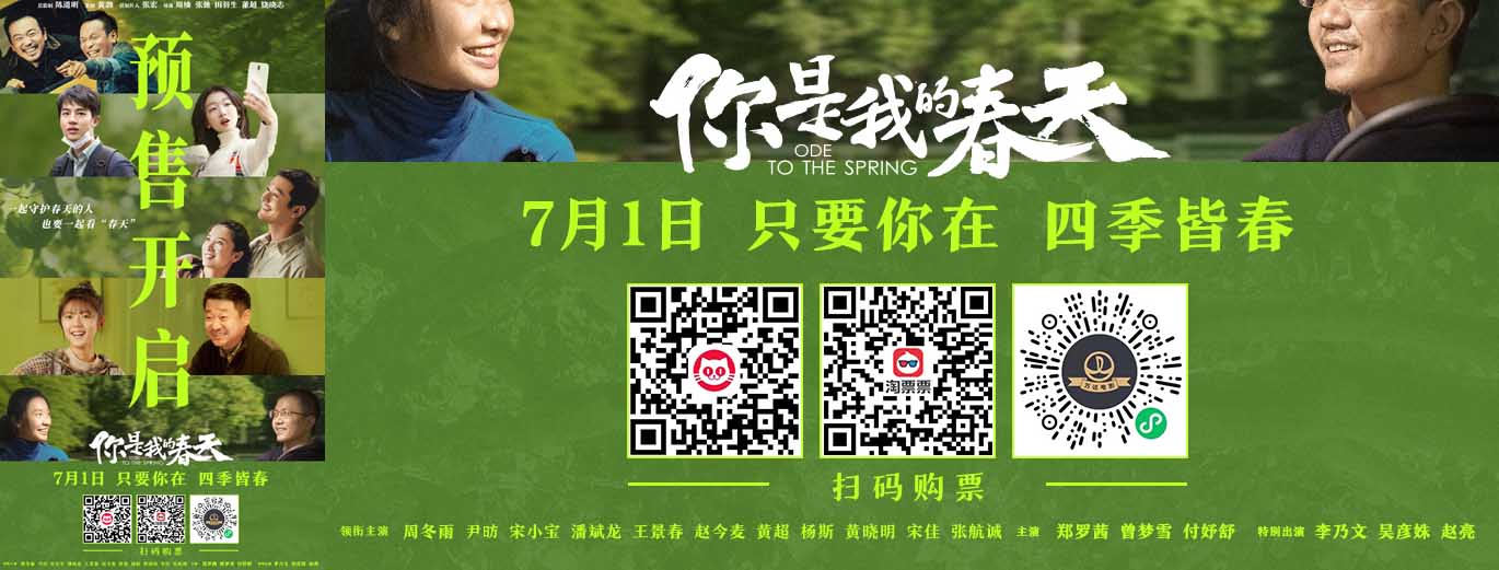 由中国电影家协会指导拍摄,陈道明任总监制,黄渤任监制,张宏任总制片人,周楠、张弛、田羽生、董越、饶晓志执导,周冬雨、尹昉、宋小宝、潘斌龙、王景春、赵今麦、黄超、杨斯、黄晓明、宋佳、张航诚领衔主演的电影《你是我的春天》将于7月1日全国上映。今......