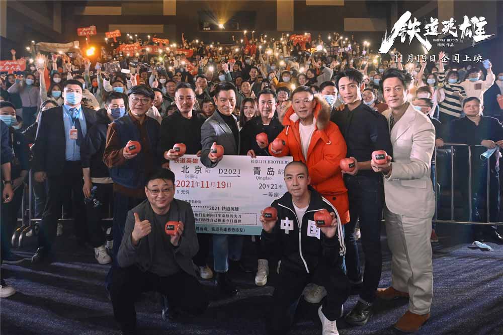 刘德华惊喜亮相电影《铁道英雄》青岛路演 与张涵予范伟