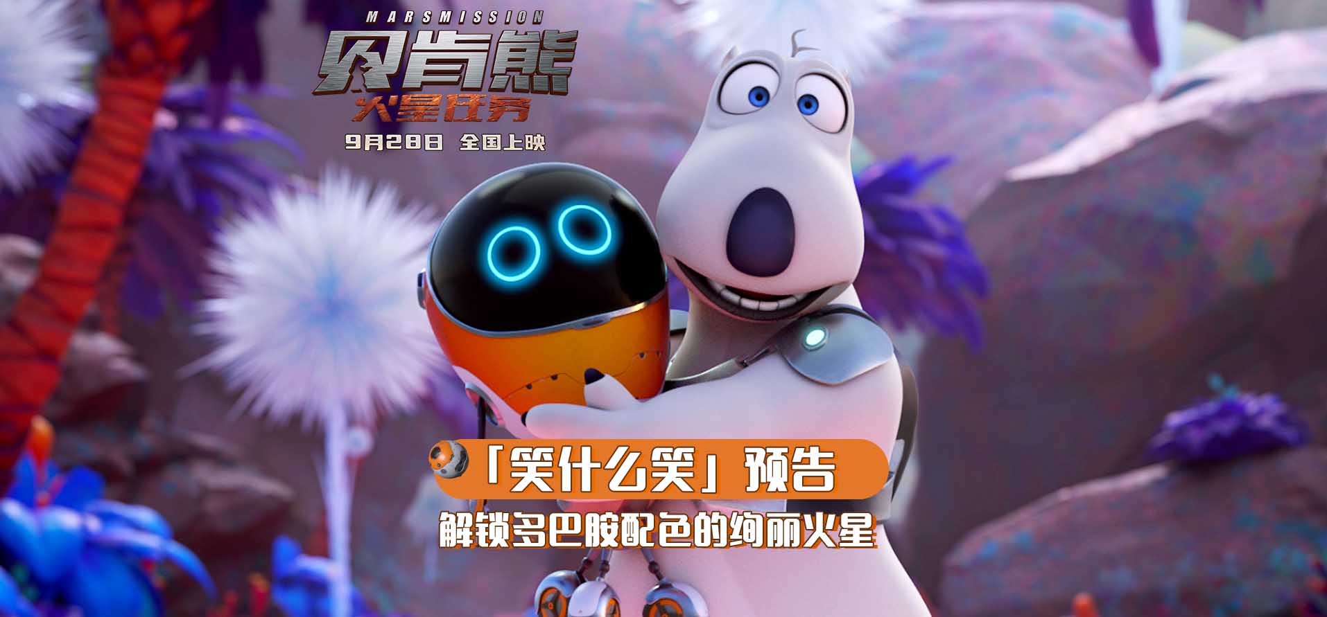 将于9月28日国庆档上映的喜剧动画电影《贝肯熊:火星任务》,今日发布“笑什么笑”版预告和一组“火星多巴胺”主题海报。 倒霉熊贝肯和G13在被火星怪物追赶中,误闯入一个色彩缤纷的地下世界。“火星多巴胺”海报展现了火星地下世界的丰富场景,有紫色......